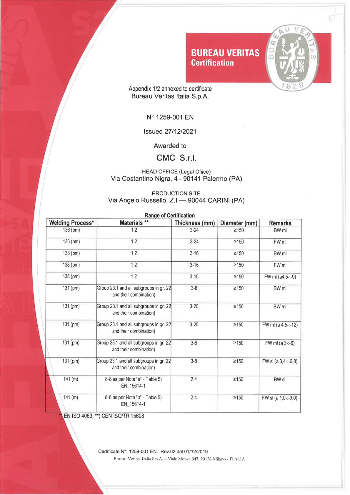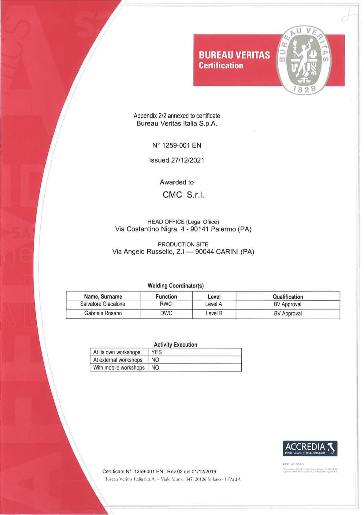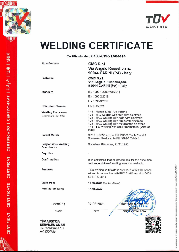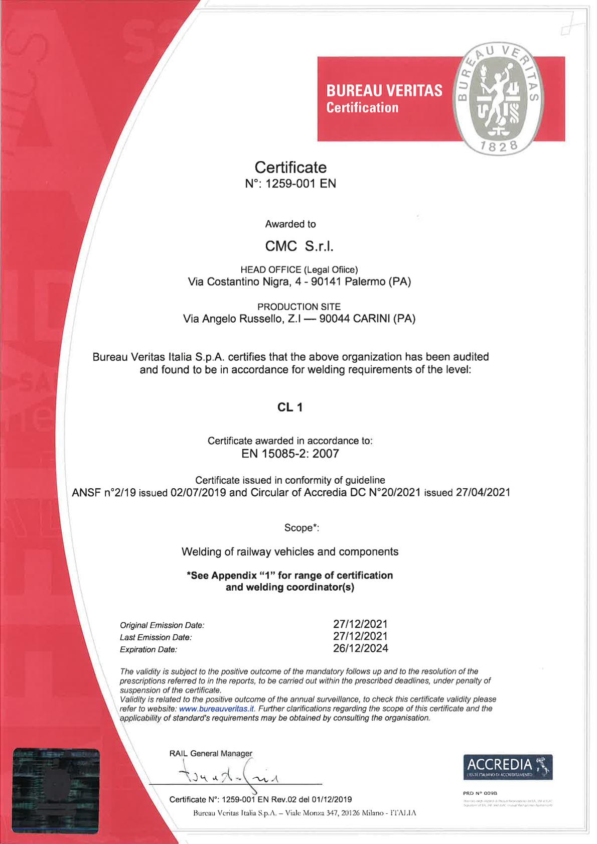 - EN 15085:2007 Part 2 – level CL1;